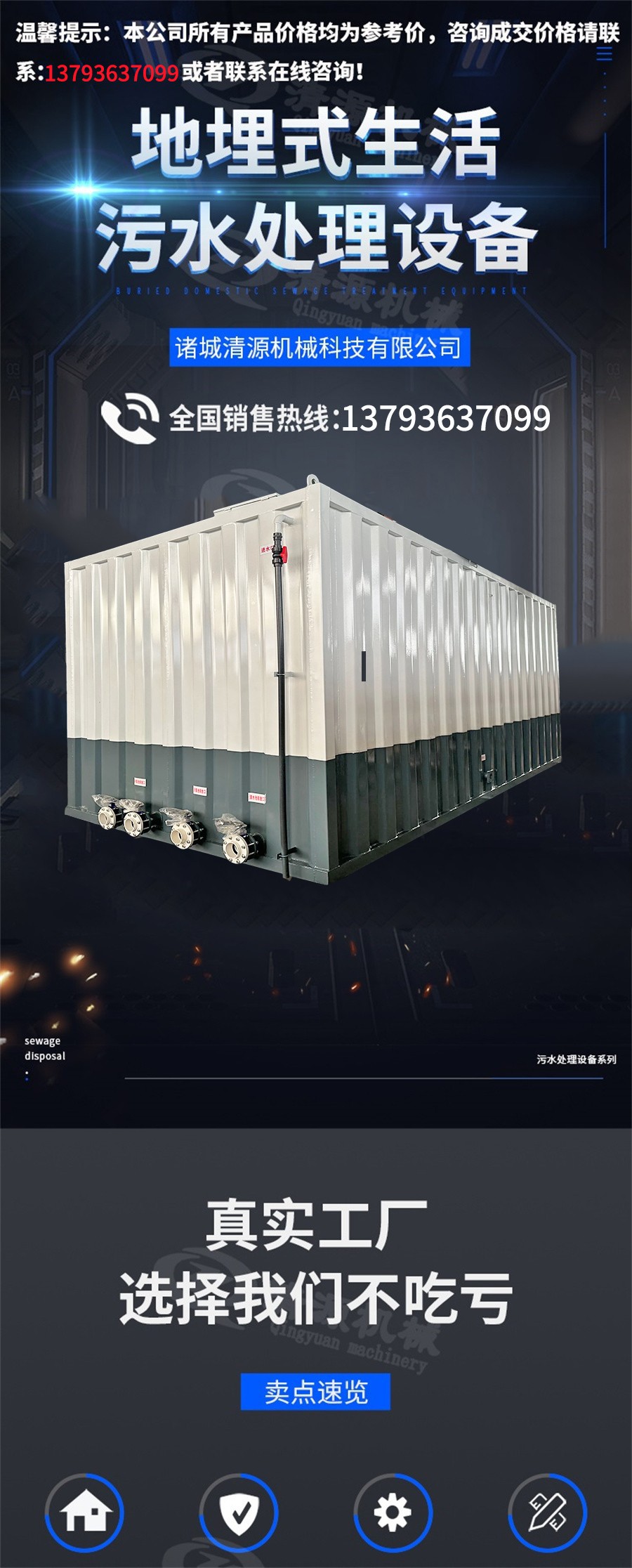 此装置一般埋设于地表之下,运用二次生物接触氧化处理工艺,它处理的效果超越全混合生物氧化池,对水质的适应性强度高,保证了水处理的稳定性。该设备在池中采用了新型弹性立体填料,对污水中的有机物质具有去除的功能。该设备通过氧化处理之后,产生的污泥量较少,仅需90天排放一次即可。为了避免放生菌类滋生、传播的现象发生,必须对水质进行深度消的毒处理。